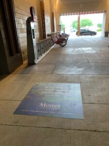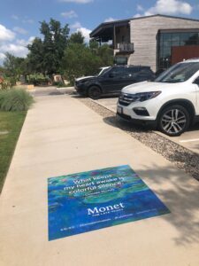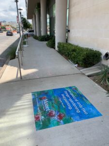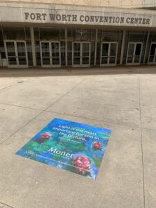 24” x 24” full-color slip-resistant sidewalk decals installed in high-traffic pedestrian corridors surrounding key Fort Worth and Arlington events. Decals are strategically placed near event entrances, pedestrian approach routes, parking walkways, and surrounding entertainment districts to capture attendees before they enter event areas.