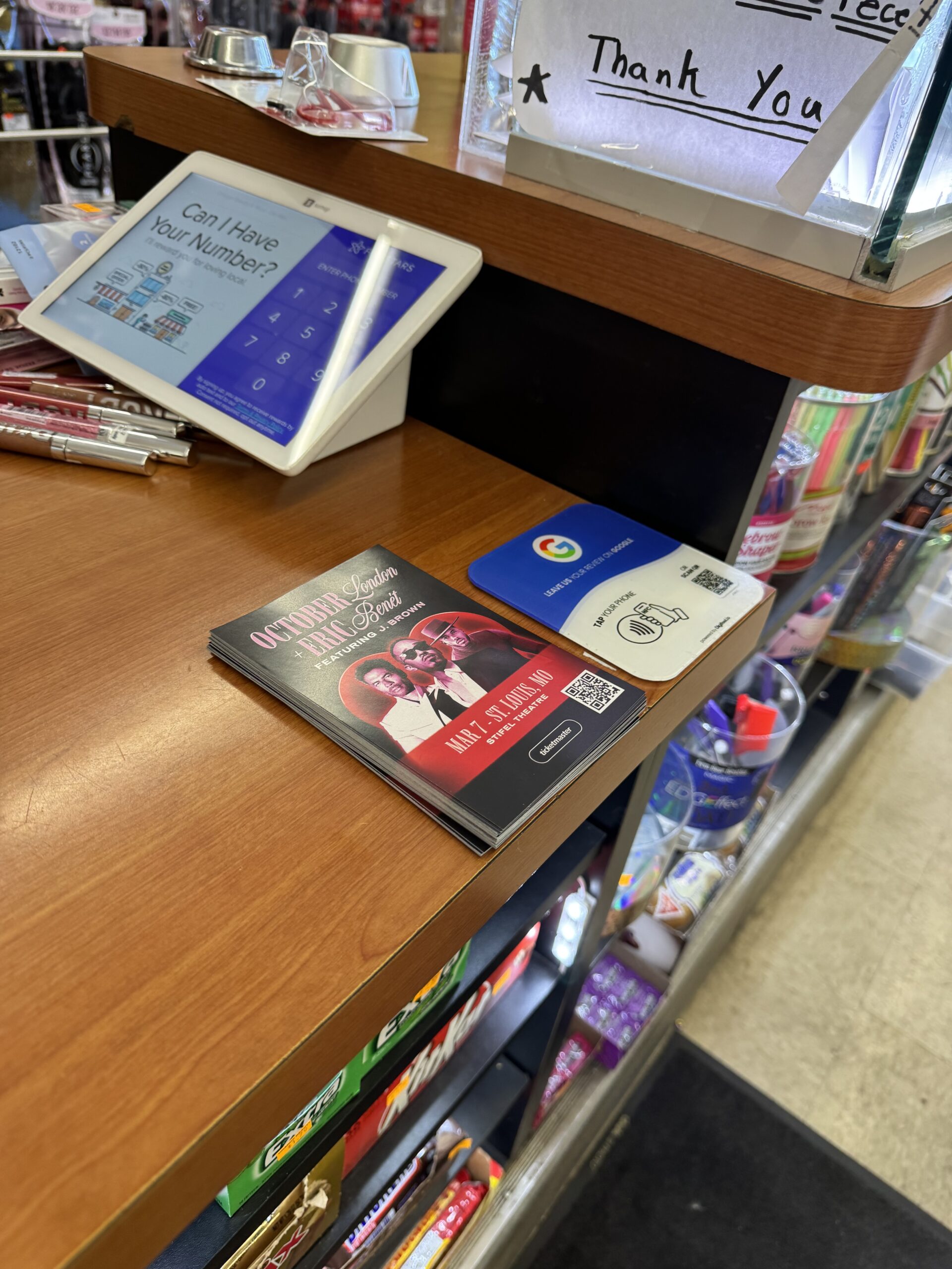 Flyers were placed at checkout counters, community boards, and designated promotional areas within: