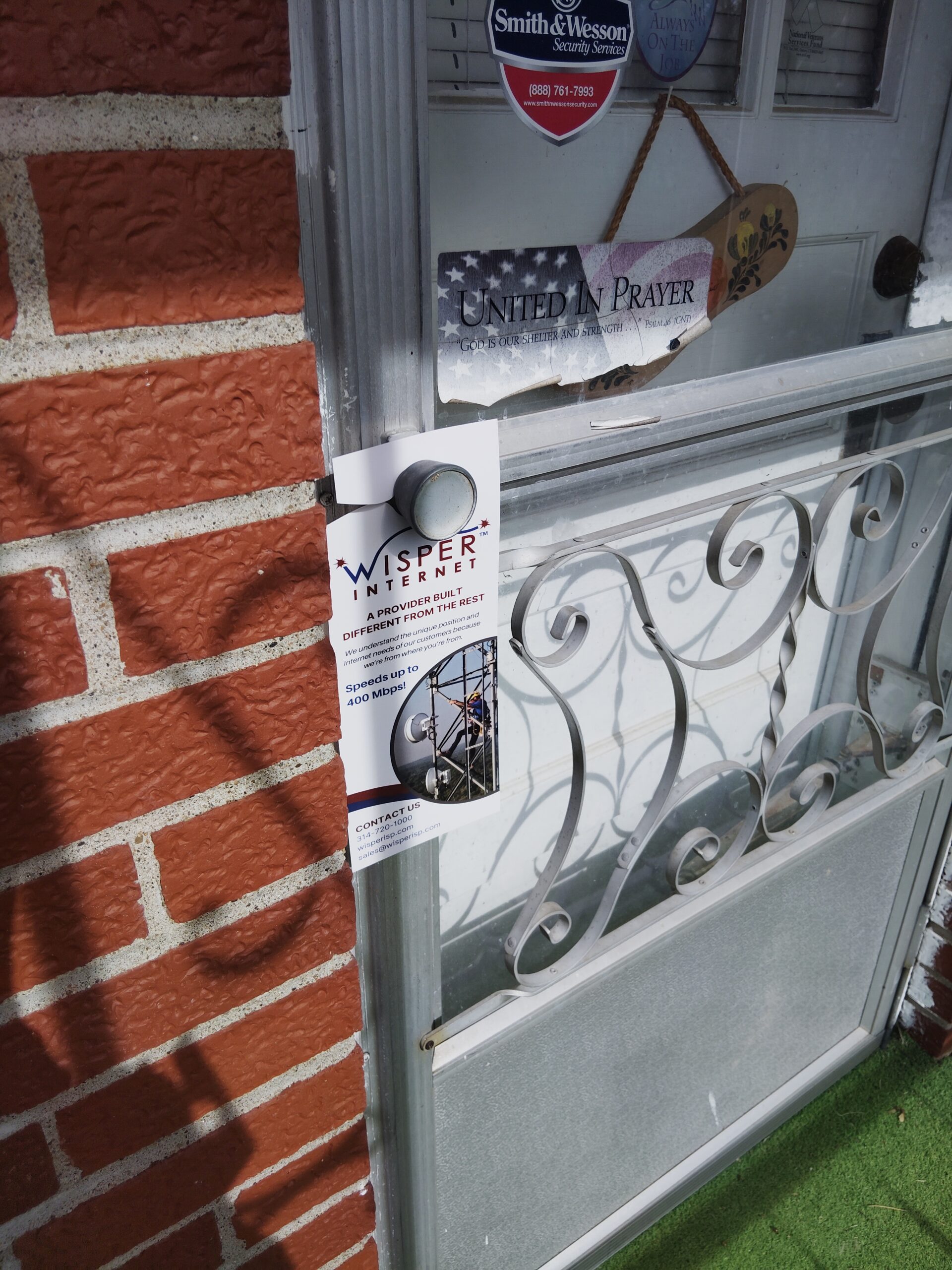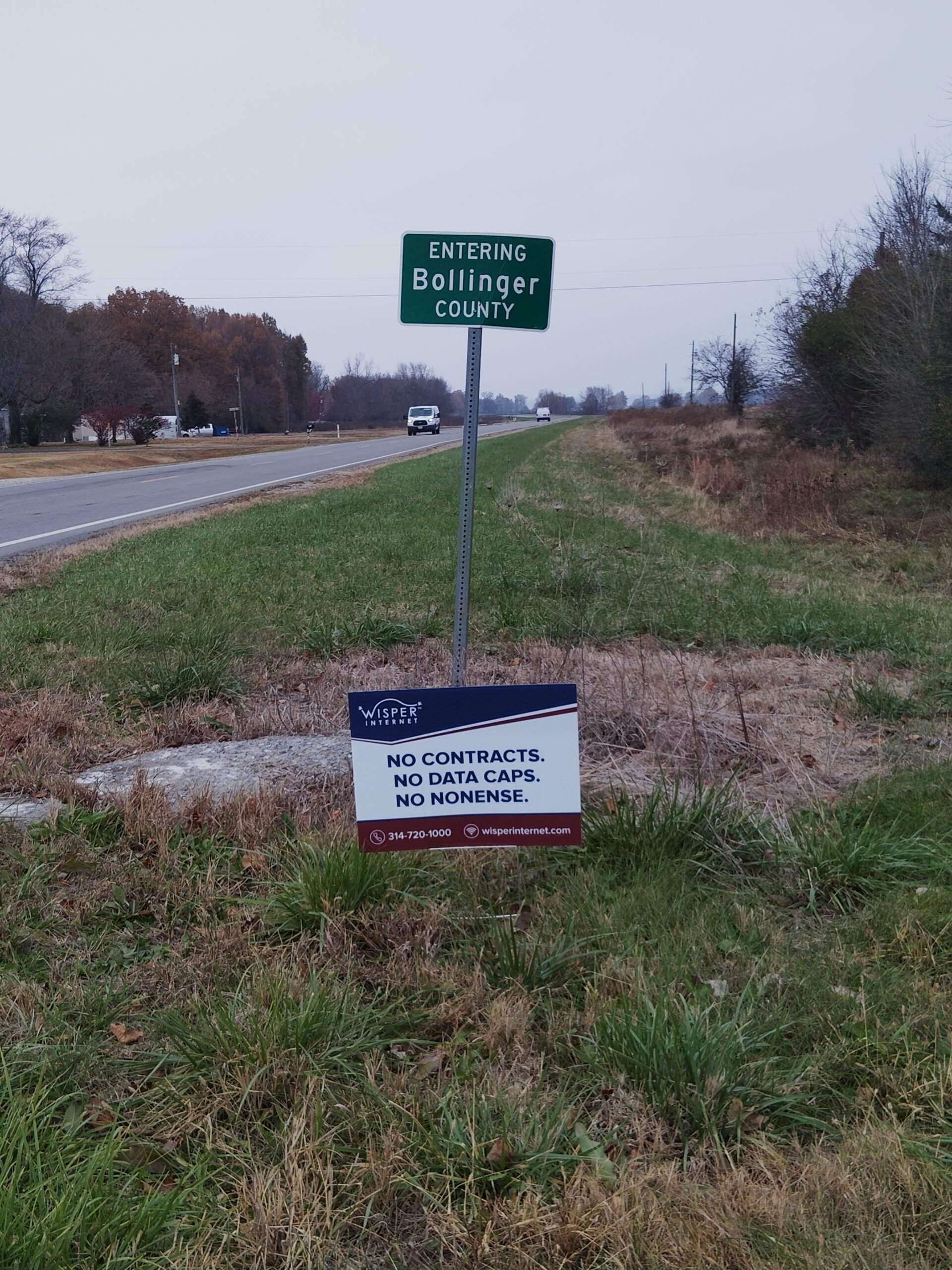Ayden Activation Group carried out a targeted residential outreach campaign across Bollinger County, MO, utilizing a list of verified serviceable addresses provided by Wisper. Local trained distributors followed address lists to ensure accurate delivery of door hangers to qualified households. Yard signs were strategically placed at high-visibility locations throughout the county to reinforce awareness along main travel corridors and community touchpoints.